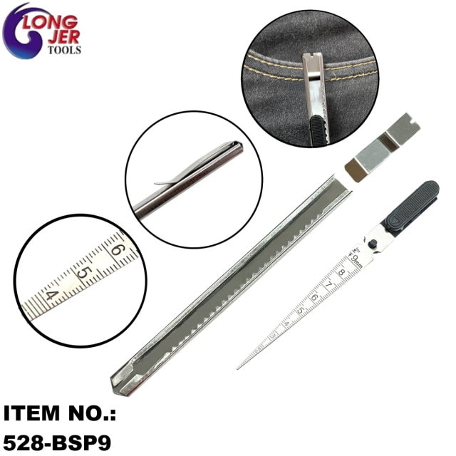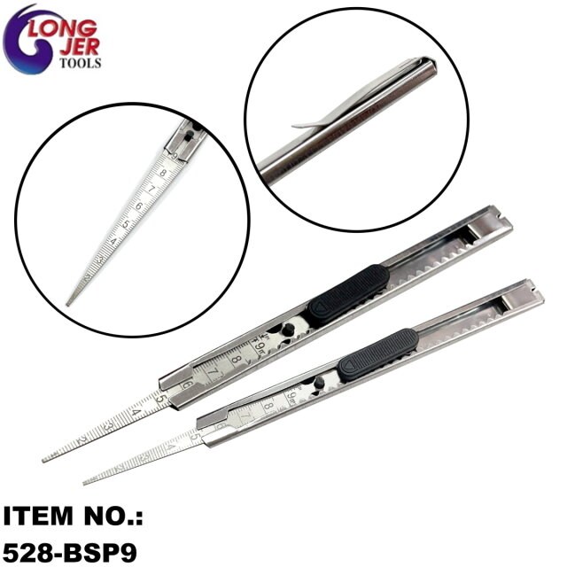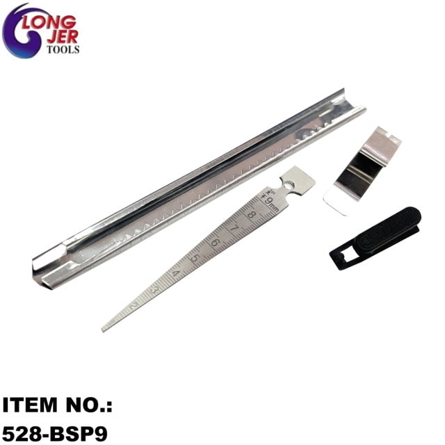 LONG JER's 0.6-9.0mm POCKET CLIP SLIDE TYPE TAPER GAUGE is made of Stainless steel material, durable and rust-resistant. With pocket clip type for safety storage and carry easily. Taper Ruler can be stored in a sliding manner. Measurement of grooves, gaps, tubing, bore, slot width, hole diameters, etc. For more information, please contact us RIGHT AWAY!