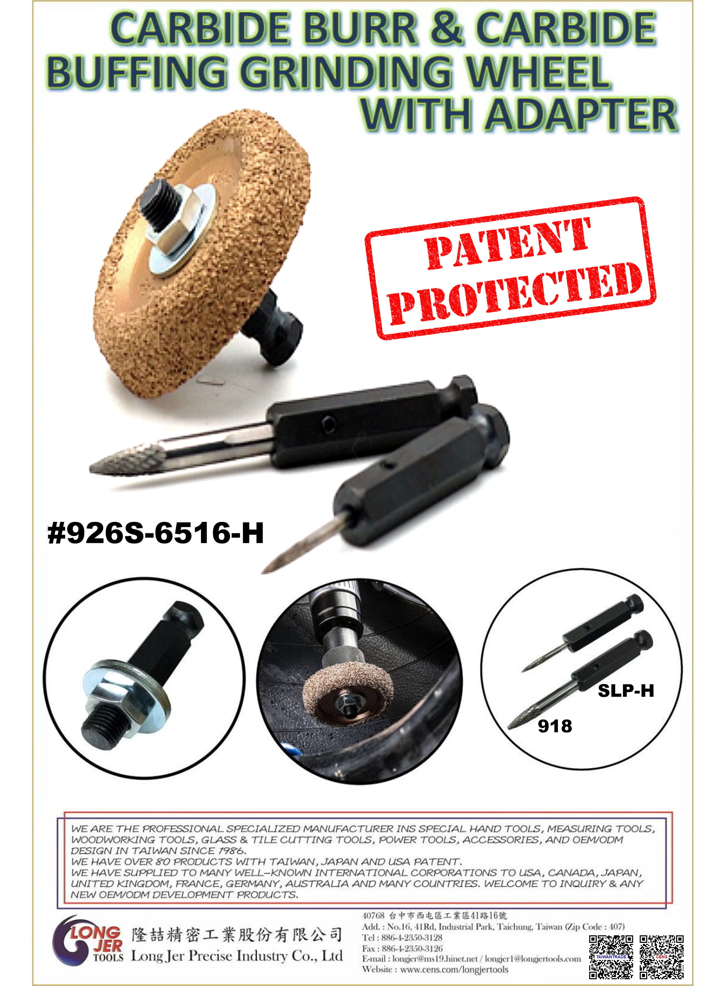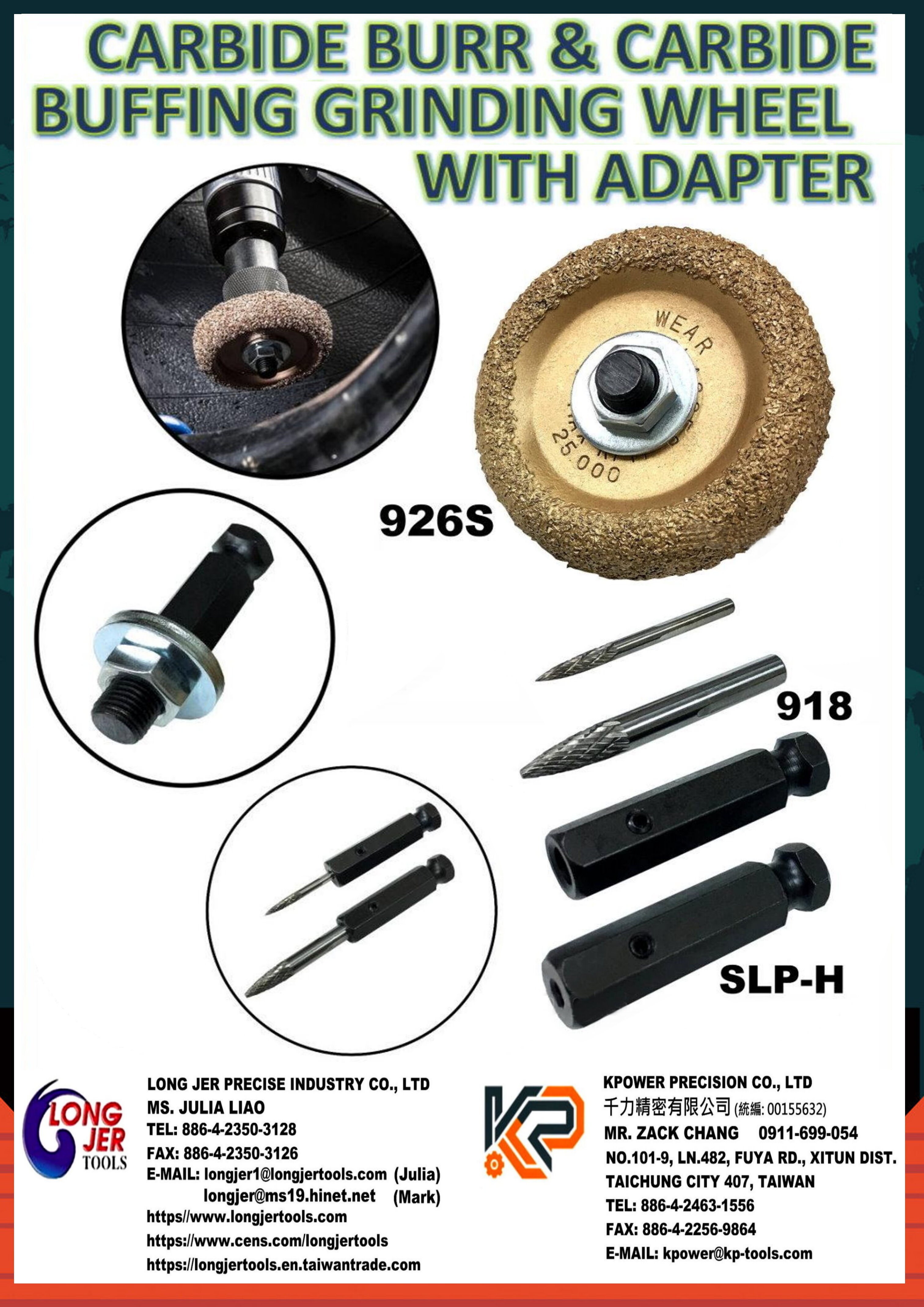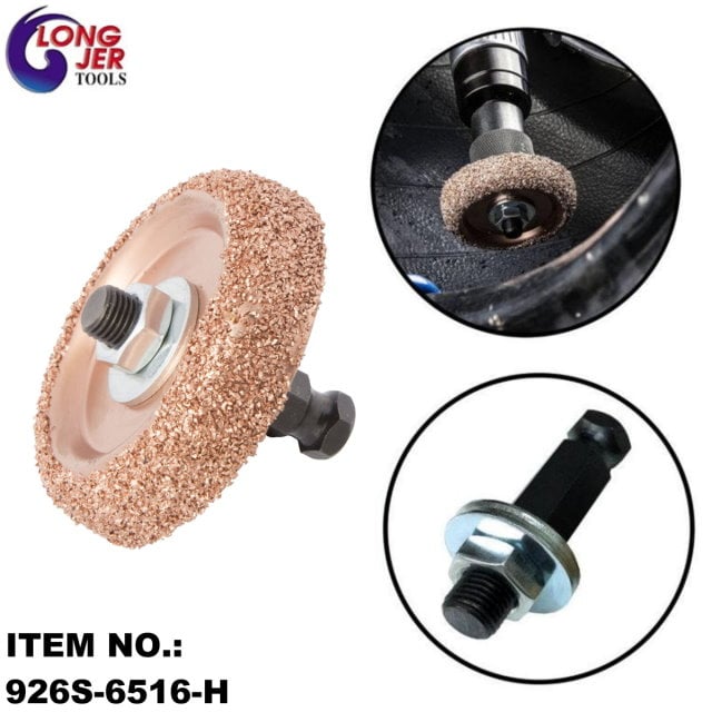 LONG JER carbide buffing wheel with adapter & burr is "LONG-LASTING" - Durable tungsten carbide material will easily stand up to repeated use in the garage for attachment to air tool quick-change chucks
